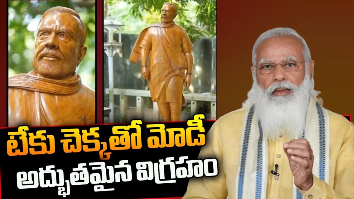 రాజసం ఉట్టిపడేలా ఉన్న టేకు చెక్కతో ప్రధాని మోడీ అద్భుతమైన విగ్రహాన్ని చెక్కి ఓ వ్యక్తి తన అభిమానాన్ని చాటుకున్నాడు. కేరళలోని త్రిసూర్ జిల్లా కొడంగల్లూర్ కు చెందిన రవీంద్రన్ వృత్తి రిత్యా శిల్పకళాకారుడు. అంతేగాక ప్రధాని మోడీకి వీరాభిమాని. ఈ అభిమానంతోనే రాజసం ఉట్టపడేలా మోడీ నడుచుకుంటూ వస్తున్న విగ్రహాన్ని చెక్కి తన అభిమానాన్ని చాటుకున్నాడు. టేకు చెక్కతో చేయబడిన ఈ బొమ్మ 6.5 అడుగుల ఎత్తుతో అద్భుతంగా నిర్మించబడింది. నరేంద్రమోడీ వరసగా మూడో సారి ప్రధాని పదవి చేపట్టిన సందర్భంగా ఈ అద్భుతమైన శిల్పంతో మోడీకి శుభాకాంక్షలు చెబుతున్నాడు. ఈ చిత్రాన్ని తన శిల్పశాలలో ఉంచడంతో పలువురు వచ్చి సందర్శిస్తున్నారు. దీంతో ఈ శిల్పానికి సంబందించిన వీడియోలు సోషల్ మీడియాలో వైరల్ గా మారాయి.