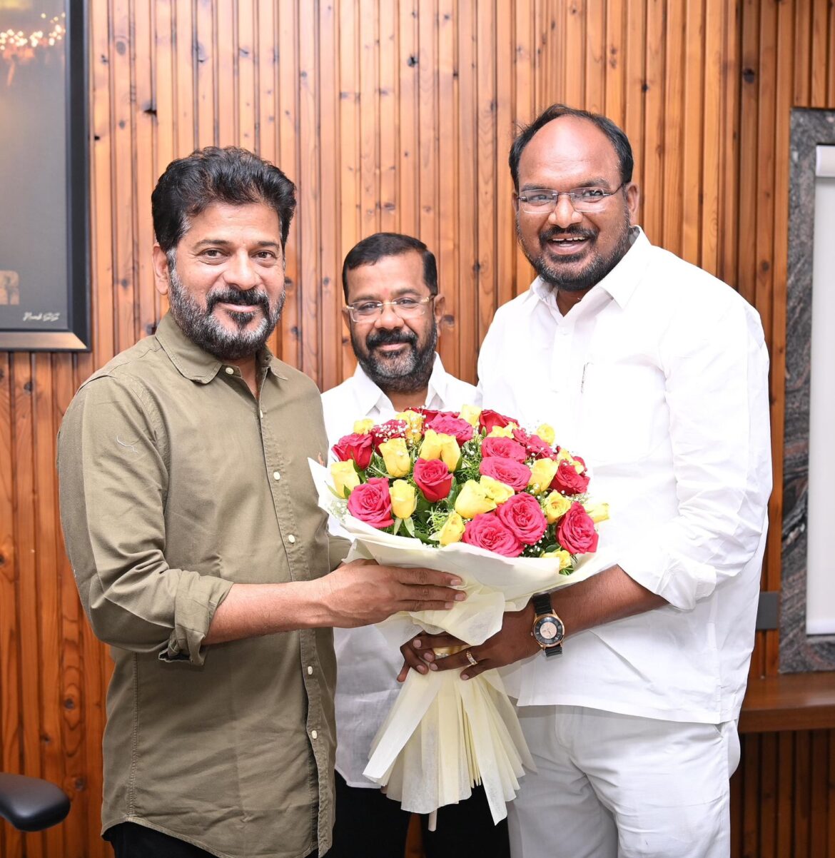 సీఎం రేవంత్ రెడ్డి ని ఆయన నివాసంలో జిల్లా అధ్యక్షులు, పశ్చిమ శాసనసభ్యులు నాయిని రాజేందర్ రెడ్డి తో కలిసి జిల్లా ఎస్సీ డిపార్ట్మెంట్ చైర్మన్ డాక్టర్ పెరుమాండ్ల మర్యాదపూర్వకంగా కలిశారు. అనంతరం రామకృష్ణ మాట్లాడుతూ.. తెలంగాణ అభివృద్ధి దిశగా ముఖ్యమంత్రి అహర్నిశలు శ్రమిస్తున్నారు. ప్రజా పాలన అందిస్తున్న ముఖ్యమంత్రికి డా. రామకృష్ణ కృతజ్ఞతలు తెలిపారు.