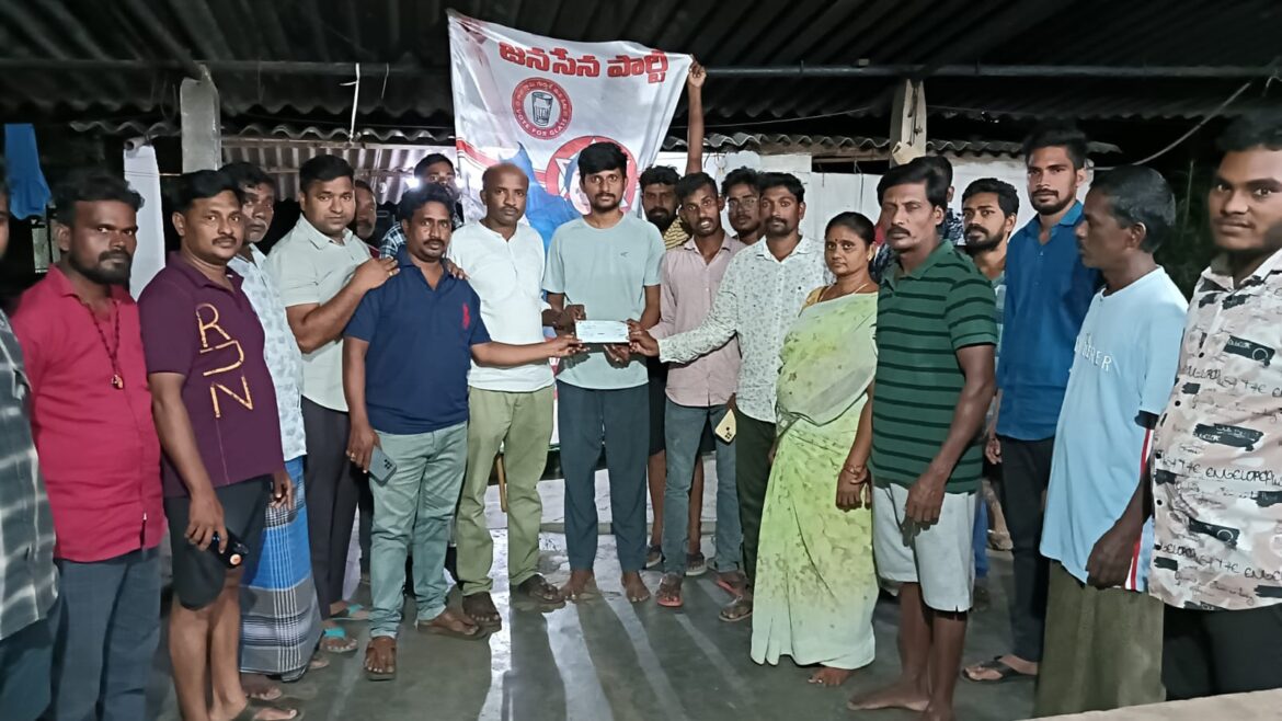 పెందుర్తి నియోజకవర్గం నరవ గ్రామంలో ఇటీవల ప్రమాదంలో గాయపడి ప్రైవేట్ ఆసుపత్రిలో చికిత్స పొందిన క్రియాశీల సభ్యత్వం తీసుకున్న గడ్డు క్రాంతి కుమార్.. వారి కుటుంబానికి వార్డు అధ్యక్షులు వబ్బిన జనార్దన శ్రీకాంత్ రూ. 50 వేలు చెక్కు ను అందజేశారు. ఈనెల 28 వరకు నాలుగో విడత సభ్యత్వ నమోదు కార్యక్రమం జరుగుతుందని కావున గతంలో సభ్యత్వ నమోదు చేసుకున్నవారు 500 రూపాయలు రుసుము కట్టి రెన్యువల్ చేసుకోవాలని తెలిపారు. ఈ కార్యక్రమంలో స్థానిక నాయకులు లింగం వాసు, గవర శ్రీను, సంతోష్, నాయుడు, జన సైనికులు తదితరులు పాల్గొన్నారు.