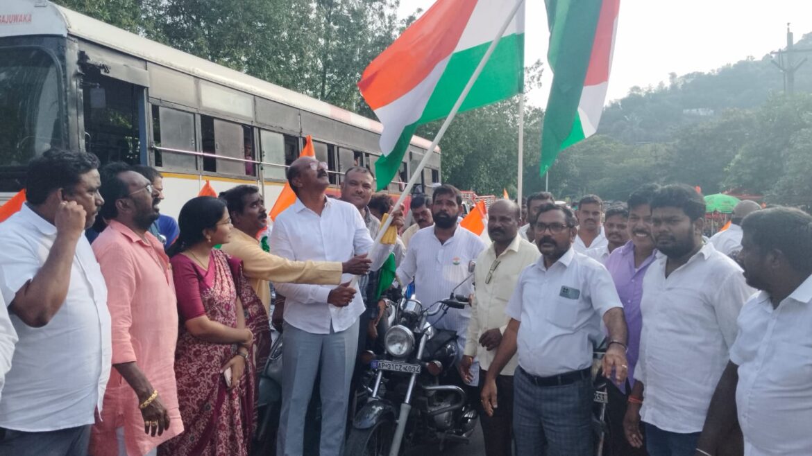 దేశ ప్రధాని గౌరవ నరేంద్ర మోడీ గారి పిలుపుమేరకు హర్ ఘర్ తిరంగా యాత్రలో భాగంగా విశాఖ వేస్ట్ లో పారిశ్రామిక ప్రాంతంలో జాతీయ జెండాలతో బైక్ ర్యాలీ నిర్వహించారు. ముఖ్యఅతిథిగా విశాఖ పశ్చిమ నియోజకవర్గ ఎమ్మెల్యే గణబాబు పాల్గొని జింకు గేటు దగ్గర ర్యాలీకి ఎమ్మెల్యే జాతీయ జెండాను ఊపి ప్రారంభించారు. అక్కడి నుండి హిమాచల్ నగర్ టిడిపి కార్యాలయంకు ర్యాలీ నిర్వహించారు. ఎమ్మెల్యే మాట్లాడుతూ ఇప్పటిదాకా పంచాయతీకి వంద రూపాయలు మేజర్ పంచాయతీకి 250 రూపాయలు రాష్ట్ర ప్రభుత్వం ఖర్చులు కింద ఇచ్చేది కానీ మన ప్రభుత్వం ఏర్పాటుగానే పంచాయతీరాజ్ శాఖ మంత్రివర్యులు గౌరవ శ్రీ పవన్ కళ్యాణ్ గారు పంచాయతీకి 10000 మేజర్ పంచాయతీకి 25000 చొప్పున ఇవ్వడం జరిగింది చాలా శుభదాయకం అని కొనియాడారు. ఈ కార్యక్రమంలో బిజెపి నాయకులు, జిల్లా ప్రధాన కార్యదర్శి పొలిమేర శ్రీనివాసరావు ఆధ్వర్యంలో నిర్వహించగా బిజెపి వెస్ట్ కన్వీనర్ దాడి పురుషోత్తము రమేష్ ములగాడ మండల అధ్యక్షులు కవులూరి గురుమూర్తి బిజెపి రాష్ట్ర ఎస్సీ మోక్ష ఉపాధ్యక్షులు కొక్కిలిగడ్డ విజయబాబు, తేప్పల సతీష్, గుర్తుల సతీష్ జనసేన నాయకురాలు అంగా దుర్గ ప్రశాంతి గారు, టిడిపి నాయకులు, విశ్వనాధుల దినకర్, నక్క లక్ష్మణరావు tntuc presideny, c h రాము, మిత్తిరెడ్డి శంకర్రావు , పూడి భాస్కరరావు, కోరాడ శ్రీనివాసరావు, మాత శ్రీనివాసరావు, మజ్జి సోమేశ్ గారు, గేదెల రమణగారు, పోతాబత్తుల శ్రీనివాసరావు, జనసేన అనిల్ , అధిక సంఖ్యలోకూటమి నాయకులు పాల్గొన్నారు.