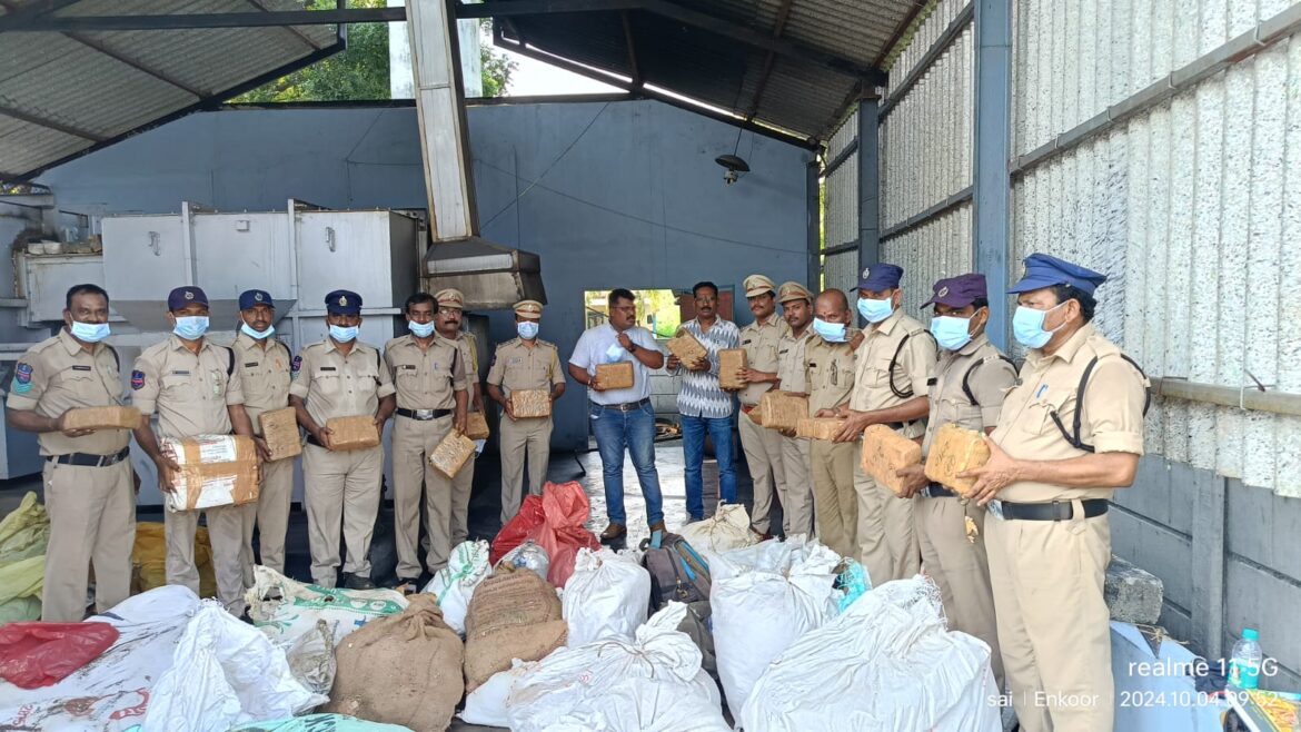 తెలంగాణ మీదుగా తరలిస్తున్న సుమారు రూ. 4కోట్ల విలువ చేసే నిషేధిత గంజాయిని ఎక్సైజ్ అధికారులు దహనం చేశారు. భద్రాద్రి కొత్తగూడెం పరిధిలోని పాల్వంచ, అశ్వరావుపేట, మణుగూరు ఎక్సైజ్ పోలీస్ స్టేషన్ల పరిధిలో 22 కేసుల్లో పట్టుబడ్డ 1065.13 కేజీల గంజాయిని ఖమ్మంలోని ప్రభుత్వ అమోదిత డిస్ట్రాయిడ్ కన్సల్టింగ్ ఏడబ్ల్యూఎస్ కంపెనీలో ఉన్నతాధికారుల ఆదేశాల మేరకు గంజాయిని దహనం చేశారు. ఒరిస్సా, ఆంధ్రప్రదేశ్ సరిహద్దుల నుంచి తెలంగాణ, కర్ణాటక, మహారాష్ట్ర, తమిళనాడు, గోవా, రాజస్థాన్తో పాటు పలు రాష్ట్రాలకు సరపరా అవుతున్న గంజాయిని తీసుకు వెళ్లాలంటే వయా ఖమ్మం, భద్రాచలం మీదుగా వెళ్లాల్సిందేనని అధికారులు వివరించారు. ఖమ్మం, కొత్తగూడెం జిల్లాల ఎక్సైజ్ అధికారులు, ఎస్టీఎఫ్, డీటీఎఫ్ టీమ్లు గంజాయిని కలిసి పట్టుకున్నారని తెలిపారు. పాల్వంచ ఎక్సైజ్ పోలీస్ స్టేషన్ పరిధిలో 17 కేసుల్లో 1036.43 కిలోల గంజాయి, అశ్వరావుపేట్ ఎక్సైజ్ పోలీస్ స్టేషన్ పరిధిలో ఒక కేసులో 2.8 కిలోల గంజాయి, మణుగూరు ఎక్సైజ్ పోలీస్ స్టేషన్ పరిధిలో 4 కేసుల్లో 25.9 కిలోల గంజాయిని పట్టుకున్నామని వివరించారు.